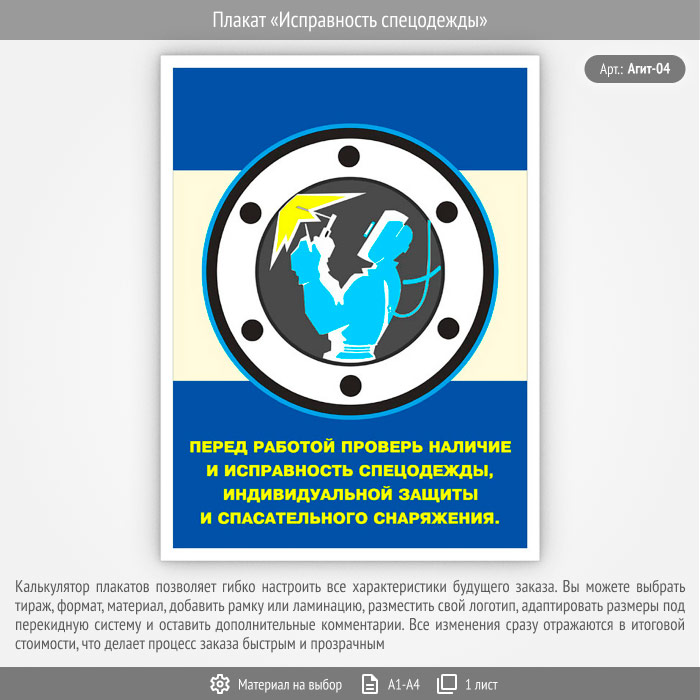 Плакат «Исправность спецодежды» (Агит-04, 1 лист) в Улан-Удэ купить