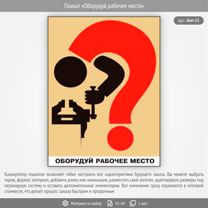 Плакат «Оборудуй рабочее место» (Агит-15, 1 лист) в Улан-Удэ купить