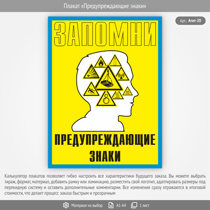 Плакат «Предупреждающие знаки» (Агит-20, 1 лист) в Улан-Удэ купить