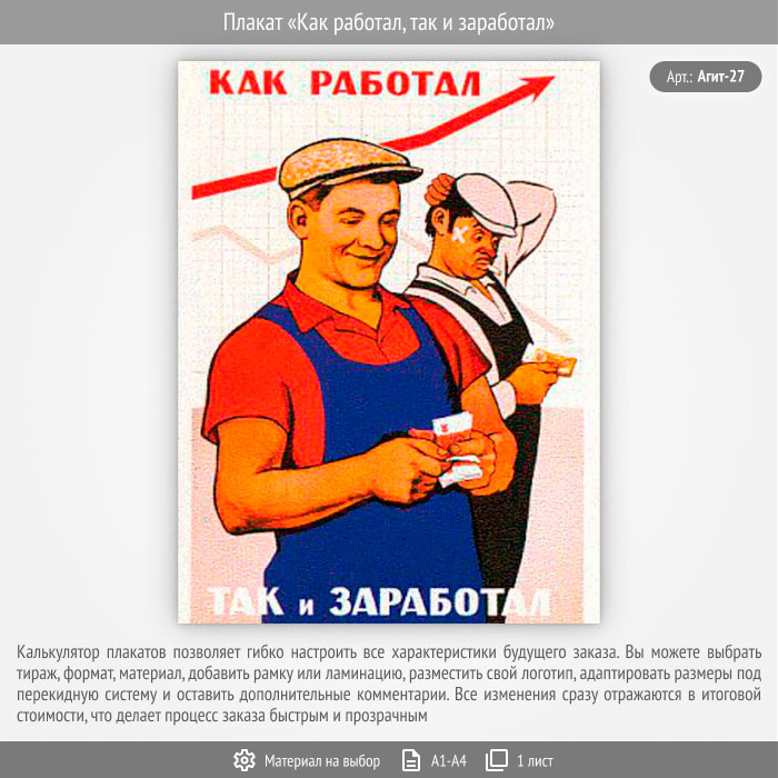 Плакат «Как работал, так и заработал» (Агит-27, 1 лист) в Улан-Удэ купить
