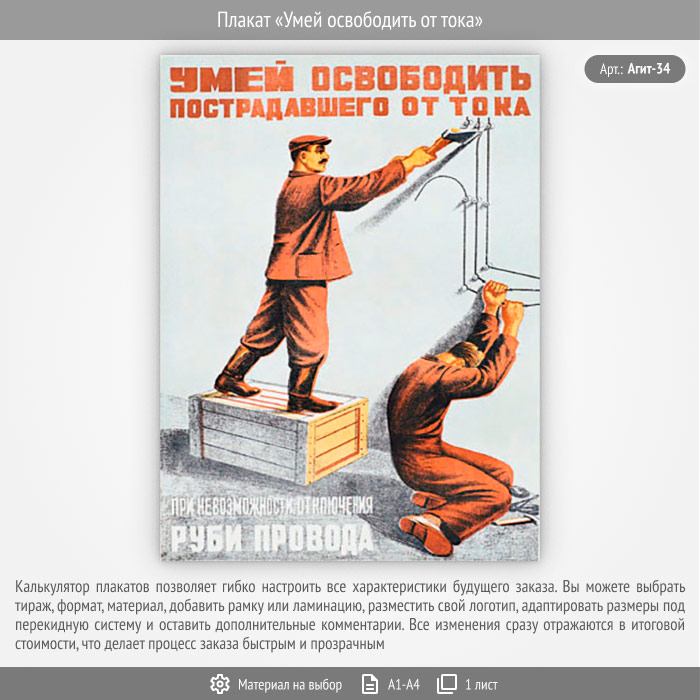 Плакат «Умей освободить от тока» (Агит-34, 1 лист) в Улан-Удэ купить