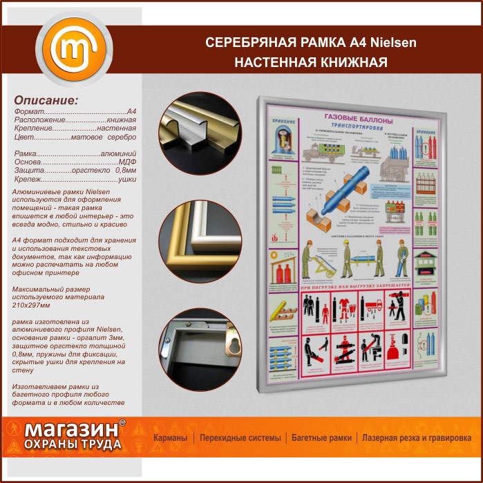 Багетная настенная рамка «Nielsen» А4 формата, книжная, матовое серебро в Улан-Удэ купить