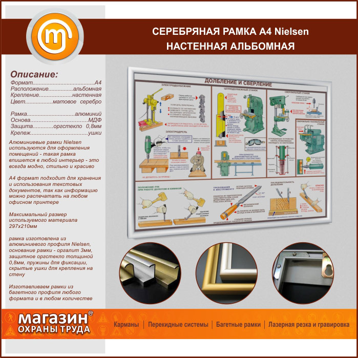 Багетная настенная рамка «Nielsen» А4 формата, альбомная, матовое серебро в Улан-Удэ купить