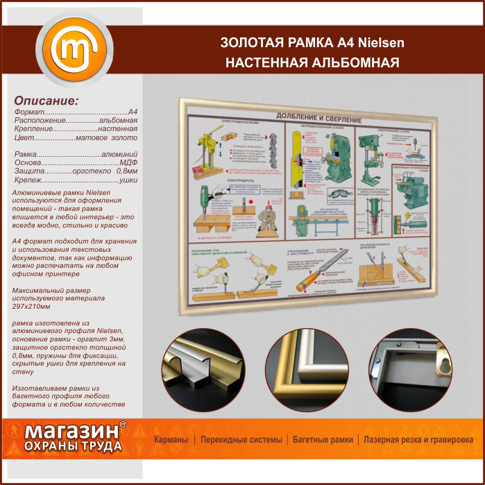 Багетная настенная рамка «Nielsen» А4 формата, альбомная, матовое золото в Улан-Удэ купить