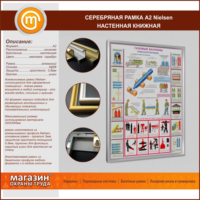 Багетная настенная рамка «Nielsen» А2 формата, книжная, матовое серебро в Улан-Удэ купить