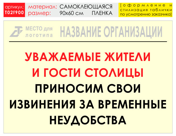 Баннер «Извинения», T02 (самоклеящаяся плёнка, 90х60 см) в Улан-Удэ купить
