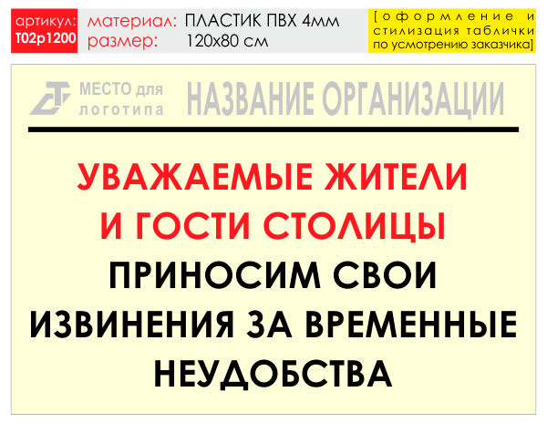 Баннер «Извинения», T02 (пластик 4 мм, 120х90 см) в Улан-Удэ купить
