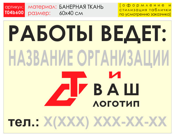 Баннер «Работы ведет», T04 (баннерная ткань, 60х40 см) в Улан-Удэ купить