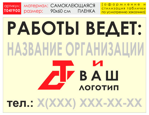 Баннер «Работы ведет», T04 (самоклеящаяся плёнка, 90х60 см) в Улан-Удэ купить