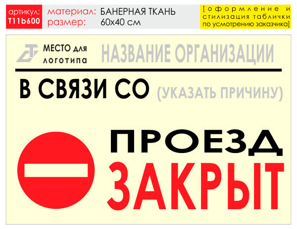 Баннер «Проезд закрыт», T11 (баннерная ткань, 60х40 см) в Улан-Удэ купить