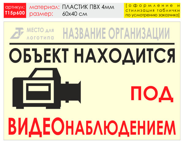 Баннер «Видеонаблюдение», T15 (пластик 4 мм, 60х40 см) в Улан-Удэ купить