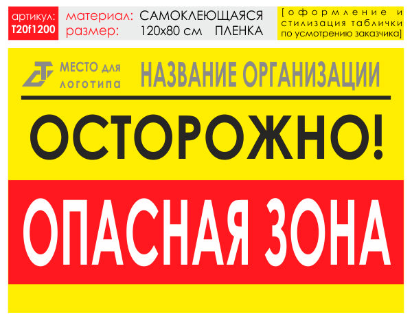 Баннер «Опасная зона», T20 (самоклеящаяся плёнка, 120х90 см) в Улан-Удэ купить