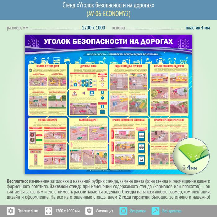 Стенд «Уголок безопасности на дорогах» (AV-06-ECONOMY2) в Улан-Удэ купить