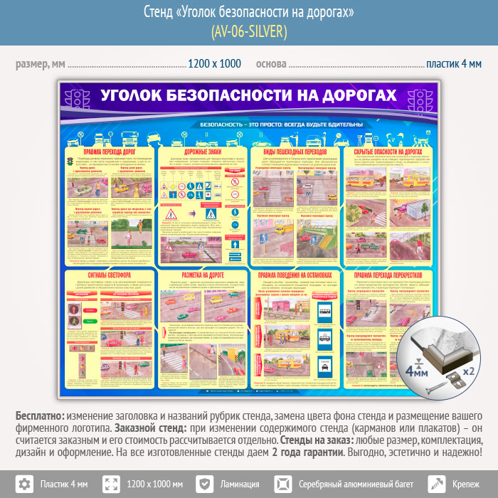 Стенд «Уголок безопасности на дорогах» (AV-06-SILVER) в Улан-Удэ купить