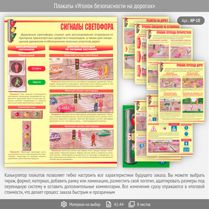 Плакаты «Уголок безопасности на дорогах» (АР-10, 8 листов) в Улан-Удэ купить