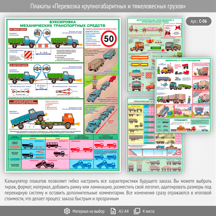 Плакаты «Перевозка крупногабаритных и тяжеловесных грузов» (С-06, 4 листа) в Улан-Удэ купить