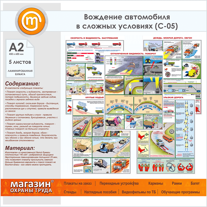 Плакаты «Вождение автомобиля в сложных условиях» (С-05, ламинированная бумага, А2, 5 листов) в Улан-Удэ купить