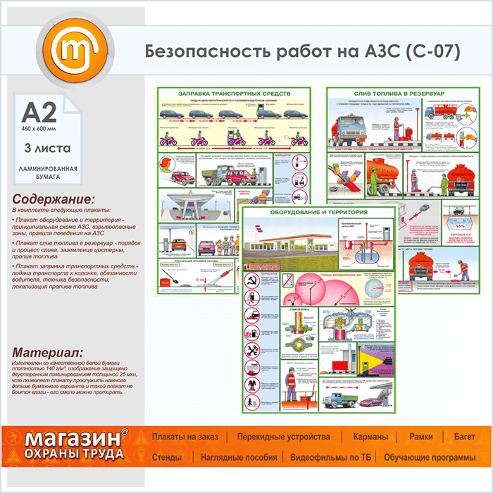 Плакаты «Безопасность работ на АЗС» (С-07, ламинированная бумага, А2, 3 листа) в Улан-Удэ купить