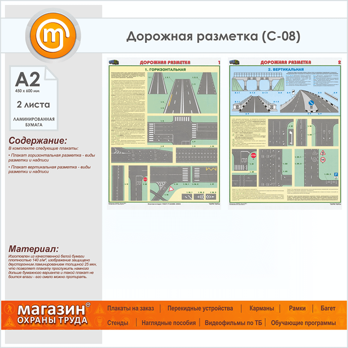 Плакаты «Дорожная разметка» (С-08, ламинированная бумага, А2, 2 листа) в Улан-Удэ купить