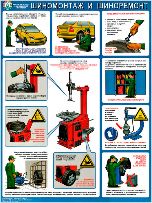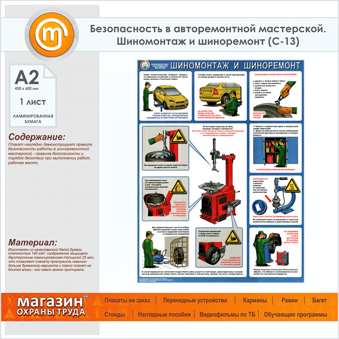 Плакат «Безопасность в авторемонтной мастерской. Шиномонтаж и шиноремонт» (С-13, ламинированная бумага, А2, 1 лист) в Улан-Удэ купить