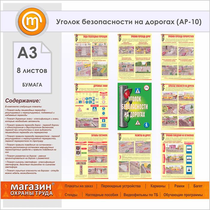Плакаты «Уголок безопасности на дорогах» (АР-10, бумага, А3, 8 листов) в Улан-Удэ купить