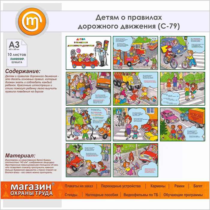 Плакаты «Детям о правилах дорожного движения» (С-79, ламинированная бумага, А3, 10 листов) в Улан-Удэ купить