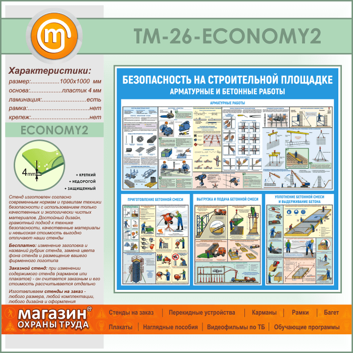 Стенд «Безопасность на строительной площадке. Арматурные и бетонные работы» (TM-26-ECONOMY2) в Улан-Удэ купить