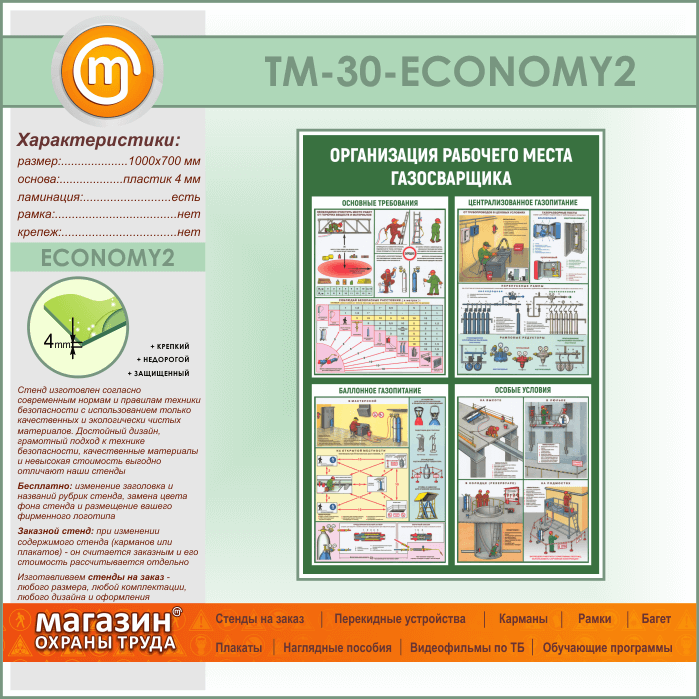 Стенд «Организация рабочего места газосварщика» (TM-30-ECONOMY2) в Улан-Удэ купить