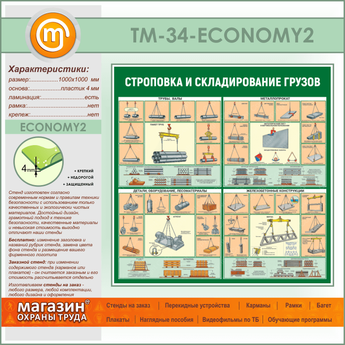 Стенд «Строповка и складирование грузов» (TM-34-ECONOMY2) в Улан-Удэ купить