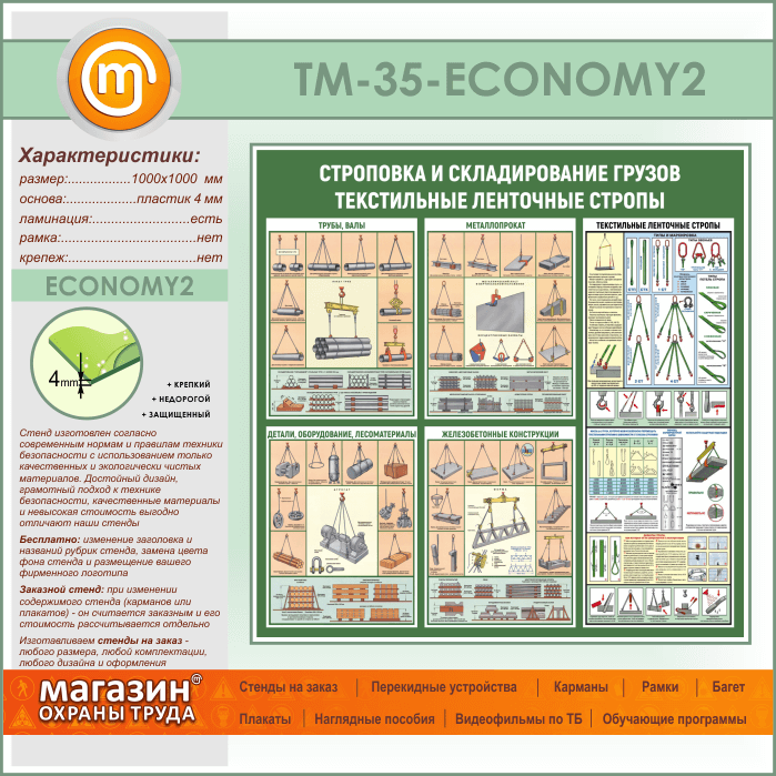 Стенд «Строповка и складирование грузов. Текстильные ленточные стропы» (TM-35-ECONOMY2) в Улан-Удэ купить