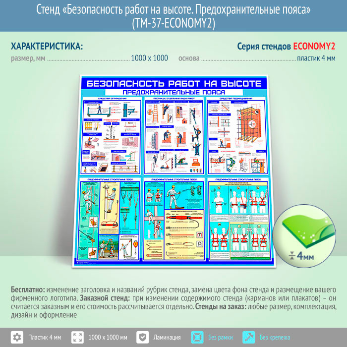 Стенд «Безопасность работ на высоте. Предохранительные пояса» (TM-37-ECONOMY2) в Улан-Удэ купить
