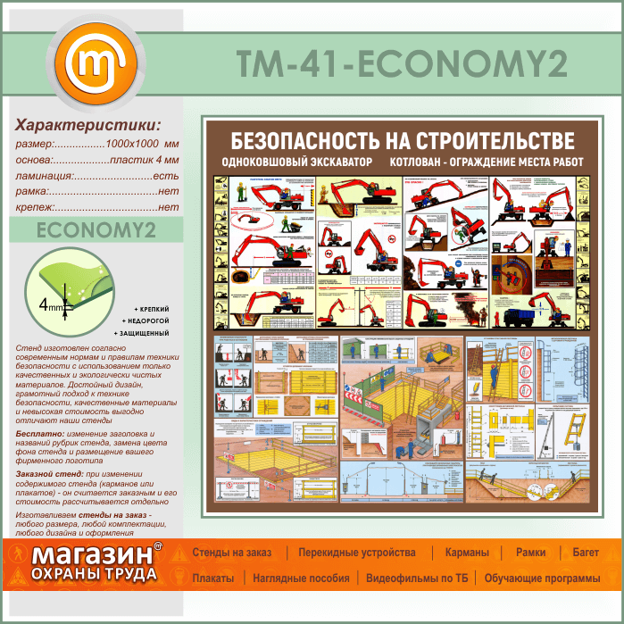 Стенд «Безопасность земляных работ. Экскаватор, котлован» (TM-41-ECONOMY2) в Улан-Удэ купить