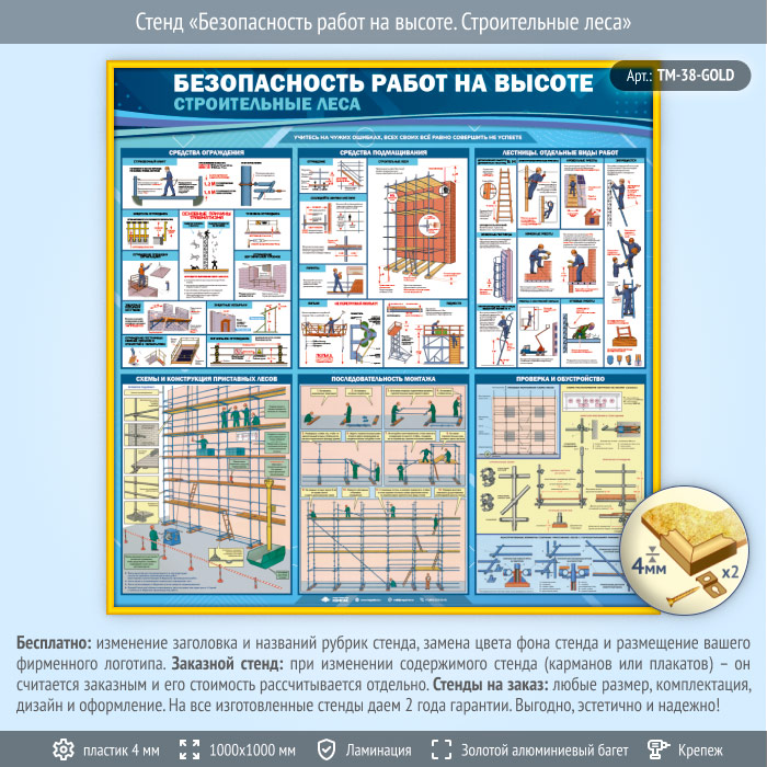 Стенд «Безопасность работ на высоте. Строительные леса» (TM-38-GOLD) в Улан-Удэ купить