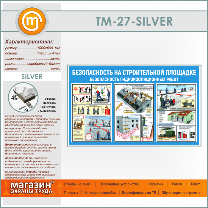 Стенд «Безопасность на строительной площадке. Безопасность гидроизоляционных работ» (TM-27-SILVER) в Улан-Удэ купить