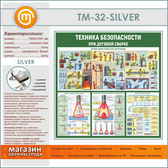 Стенд «Техника безопасности при дуговой сварке» (TM-32-SILVER) в Улан-Удэ купить