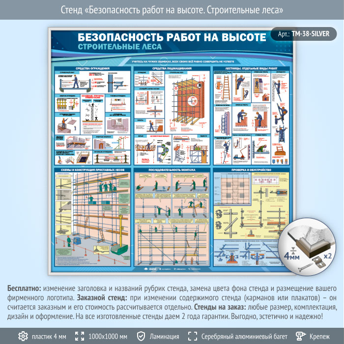 Стенд «Безопасность работ на высоте. Строительные леса» (TM-38-SILVER) в Улан-Удэ купить