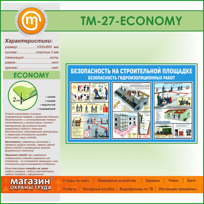 Стенд «Безопасность на строительной площадке. Безопасность гидроизоляционных работ» (TM-27-ECONOMY) в Улан-Удэ купить