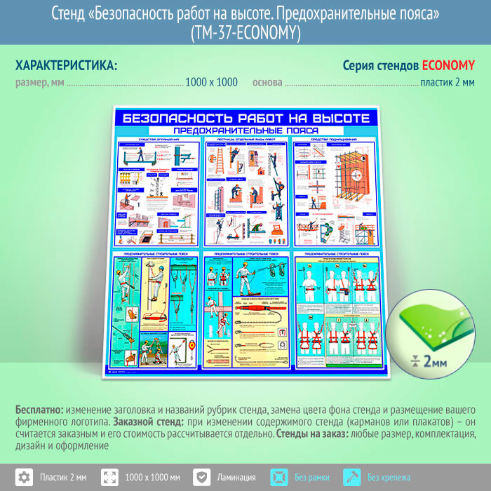Стенд «Безопасность работ на высоте. Предохранительные пояса» (TM-37-ECONOMY) в Улан-Удэ купить