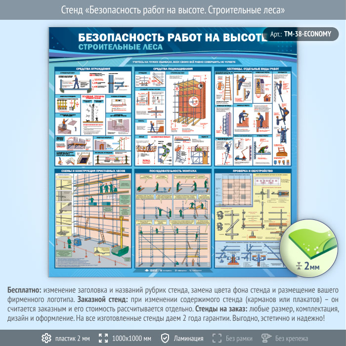 Стенд «Безопасность работ на высоте. Строительные леса» (TM-38-ECONOMY) в Улан-Удэ купить