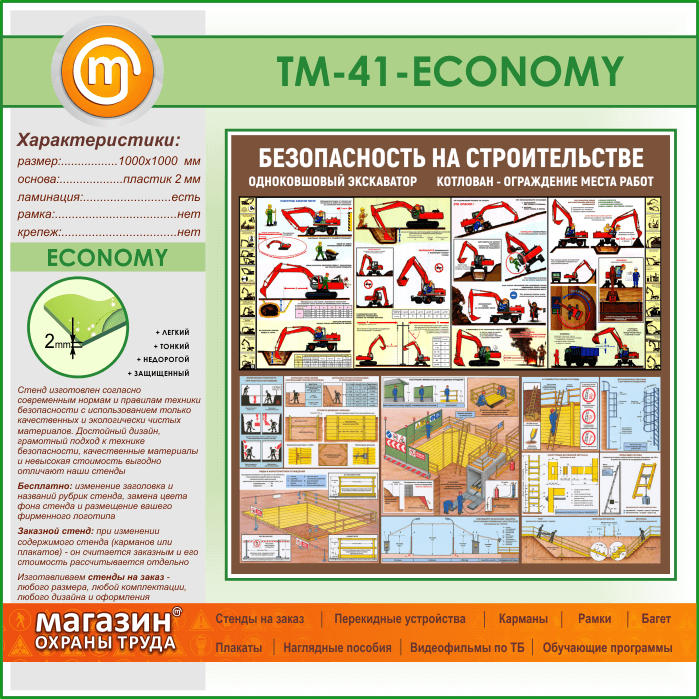 Стенд «Безопасность земляных работ. Экскаватор, котлован» (TM-41-ECONOMY) в Улан-Удэ купить