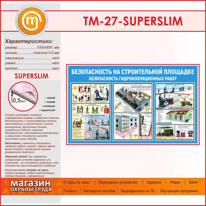 Стенд «Безопасность на строительной площадке. Безопасность гидроизоляционных работ» (TM-27-SUPERSLIM) в Улан-Удэ купить