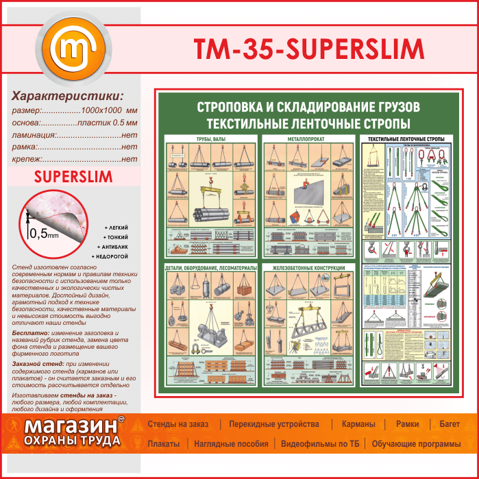 Стенд «Строповка и складирование грузов. Текстильные ленточные стропы» (TM-35-SUPERSLIM) в Улан-Удэ купить