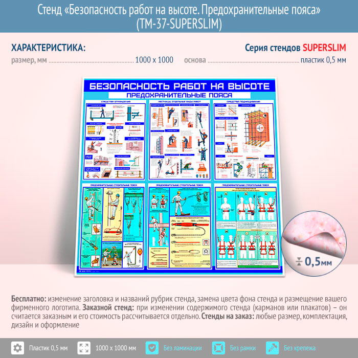 Стенд «Безопасность работ на высоте. Предохранительные пояса» (TM-37-SUPERSLIM) в Улан-Удэ купить
