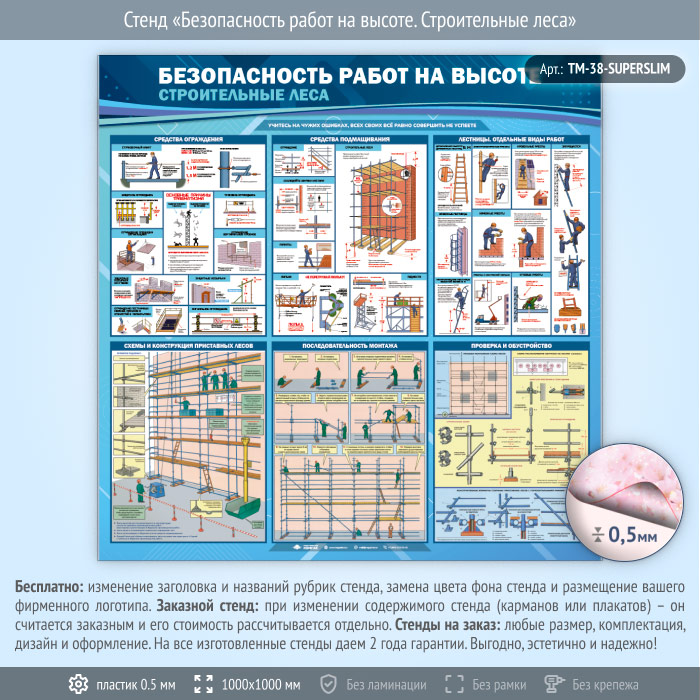 Стенд «Безопасность работ на высоте. Строительные леса» (TM-38-SUPERSLIM) в Улан-Удэ купить