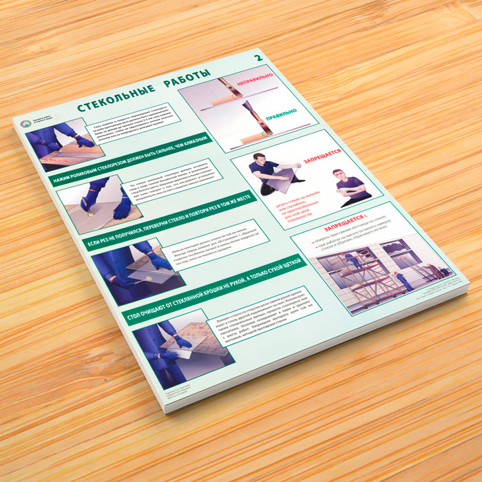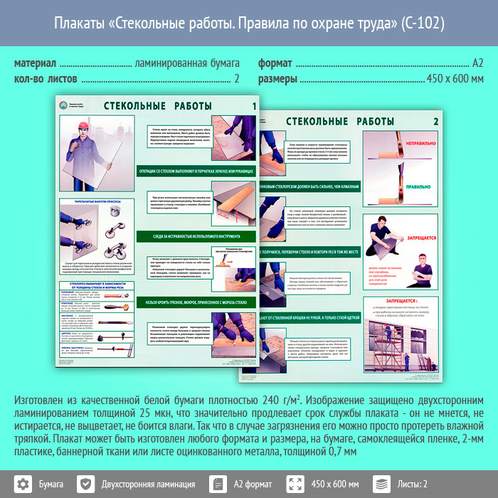 Плакаты «Стекольные работы. Правила по охране труда» (С-102, ламинированная бумага, А2, 2 листа) в Улан-Удэ купить