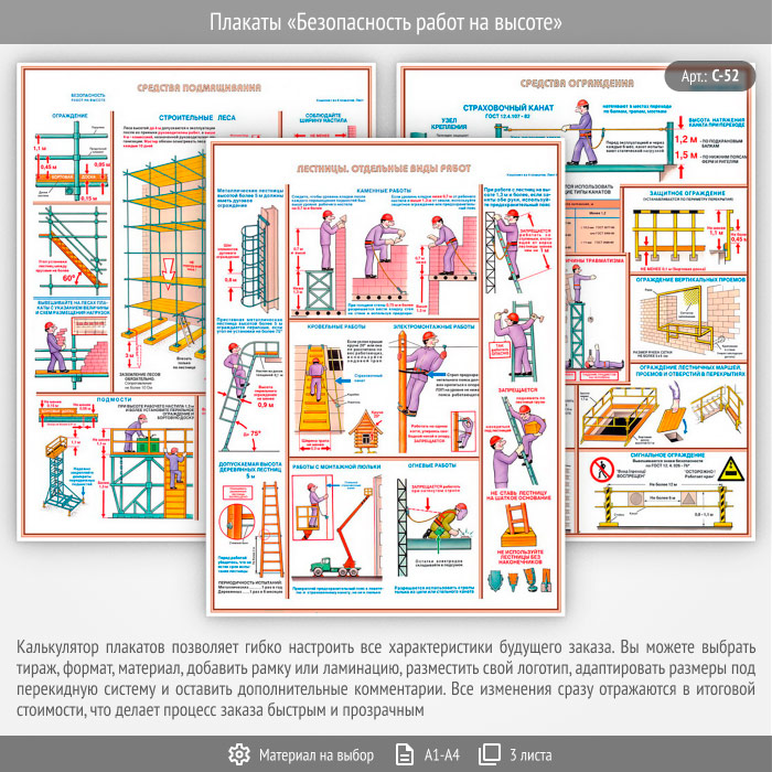 Плакаты «Безопасность работ на высоте» (С-52, 3 листа) в Улан-Удэ купить