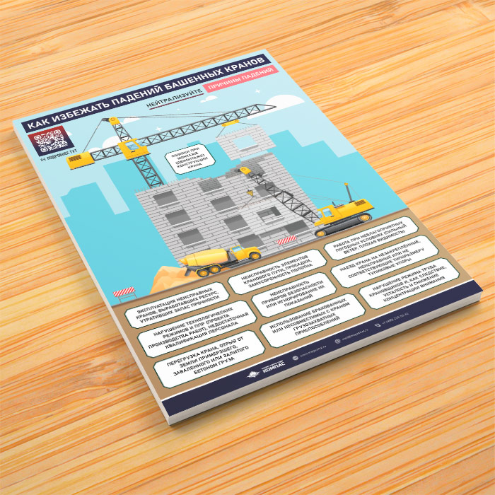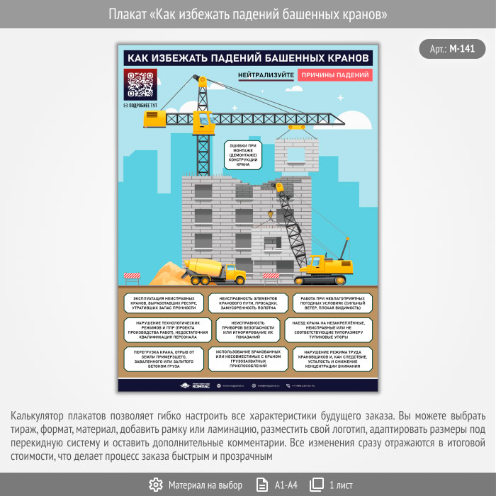 Плакат «Как избежать падений башенных кранов» с QR (М-141, 1 лист) в Улан-Удэ купить