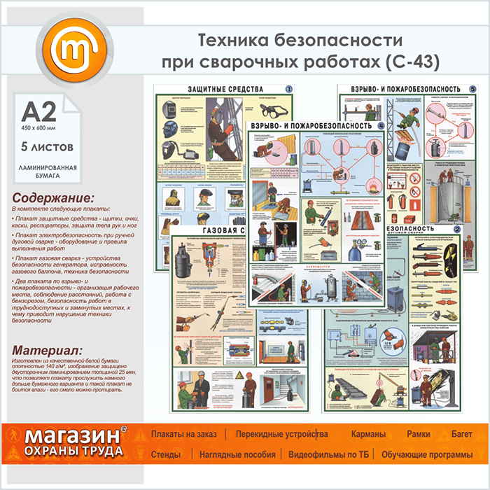 Плакаты «Техника безопасности при сварочных работах» (С-43, ламинированная бумага, А2, 5 листов) в Улан-Удэ купить