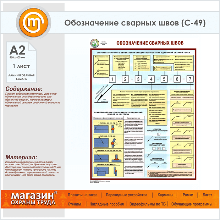 Плакат «Обозначение сварных швов» (С-49, ламинированная бумага, А2, 1 лист) в Улан-Удэ купить