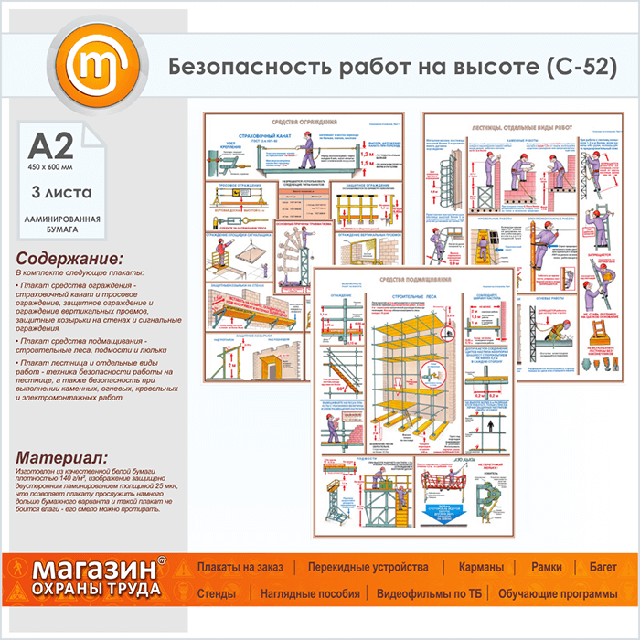 Плакаты «Безопасность работ на высоте» (С-52, ламинированная бумага, А2, 3 листа) в Улан-Удэ купить